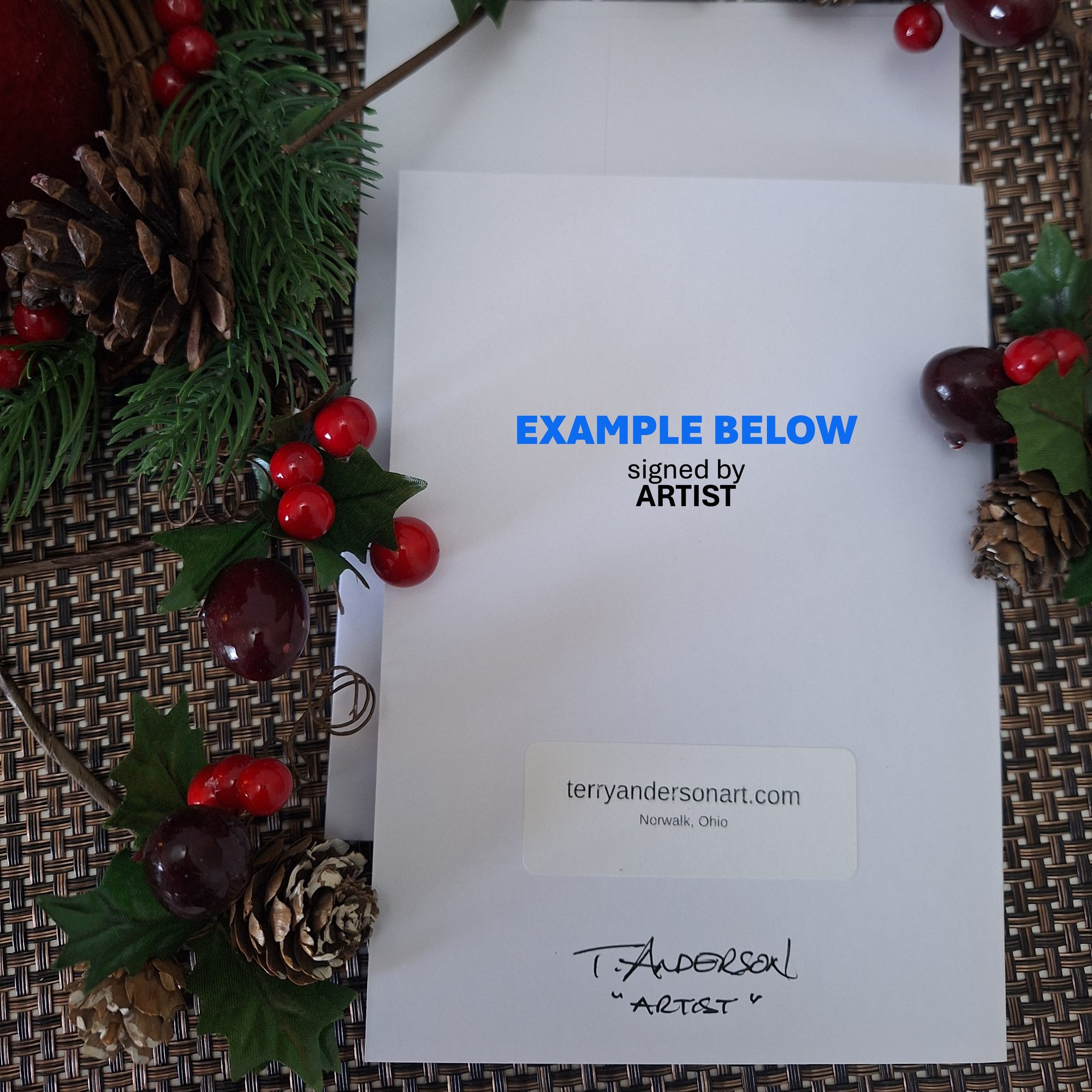 This 5 x 7 card contains a hand-mounted 4"x 6" print of Terry's original painting.